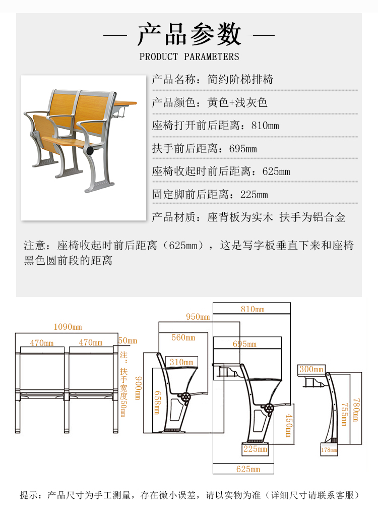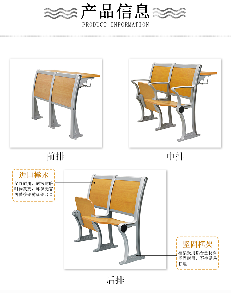 铝合金站脚连排椅阶梯教室椅礼堂椅课桌椅